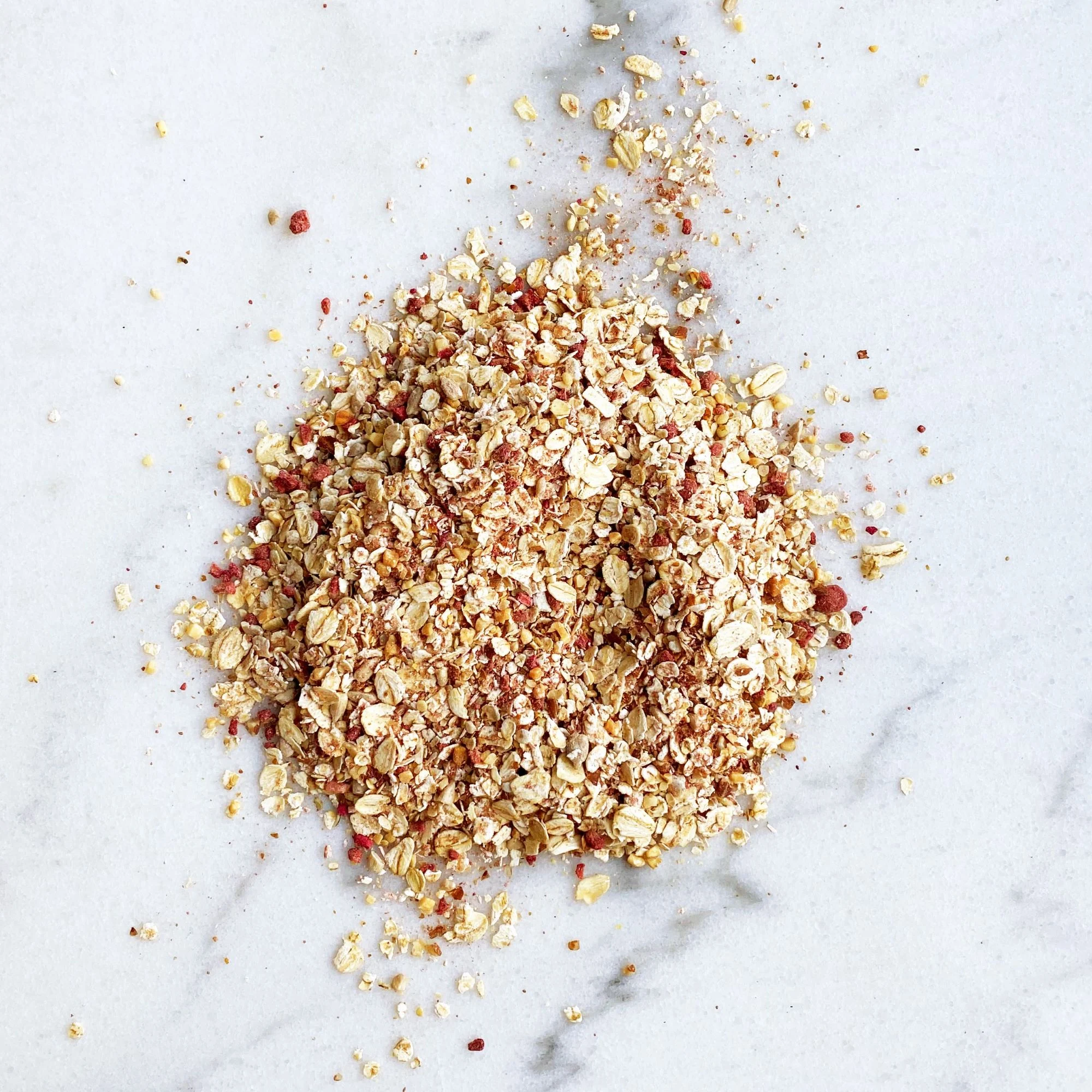 Onze Berry Blossom is een zachtroze havermout met gevriesdroogde frambozen, lichtgeroosterde amandelen en kokos. Heerlijk fris en fruitig. Eet ‘m warm als het buiten koud is, en maak er overnight oats van als de mussen van het dak vallen.